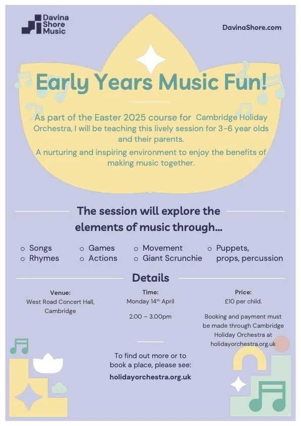 As in recent years, I expect to be running some family music workshops during the school holidays in 2023. These have always been heavily over-subscribed so check back often to be sure of getting your place!